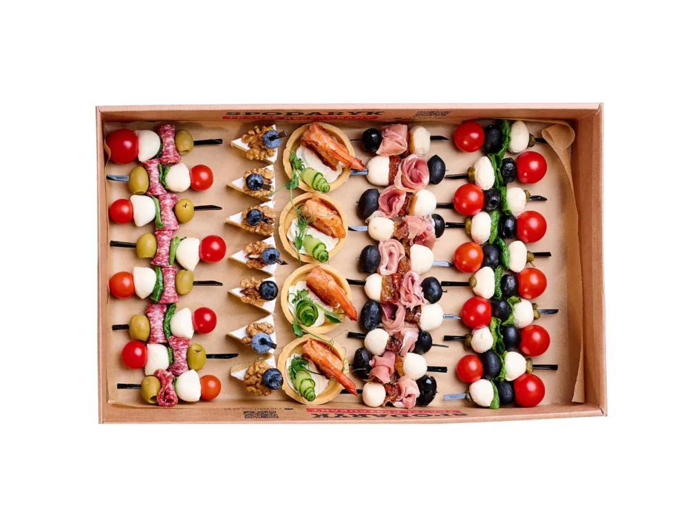 У цьому наборі: свіжі салати, міні-кіші, вишукані закуски Finger Food та ароматний гриль бокс.